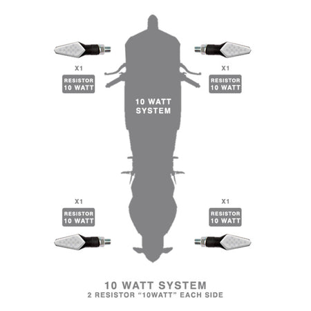 The RESISTOR 10 WATT (code RES10) is an electronic component indispensable for the correct flashing of indicators led BARRACUDA on the motorbike with 10 watt system (SOLD IN PAIRS),