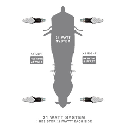 The RESISTOR 21 WATT (code RES21) is an electronic component indispensable for the correct flashing of indicators led BARRACUDA on the motorbike with 21 watt system (SOLD PER PIECE).